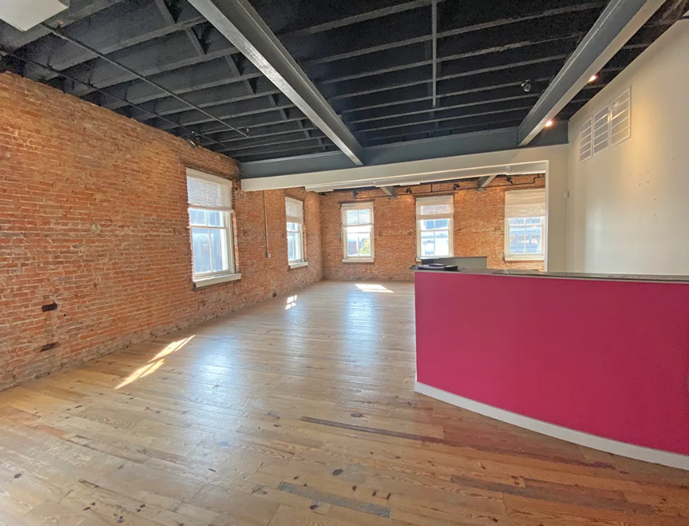 Exceptional industrial design concept with extreme detail throughout the suite; which is highlighted by the brick walls, hardwood flooring, ample windows and exposed ceiling. Offers a open floor plan for a relaxed work space environment. Suite also provides a full kitchen/break area, full bathroom with shower, plenty of space for independent work stations, as well as, quite offices for meetings.
